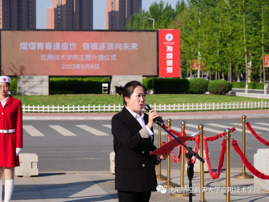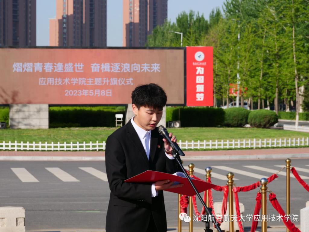 秉承初心,我的青春在沈航。主题升旗仪式上,学院2021级学生代表王智远同学在国旗下分享了他与沈航的青春故事,作为专升本学生,虽然在校只有两年时间,他倡导学生要确立自己的目标,主动学习,全面发展。
