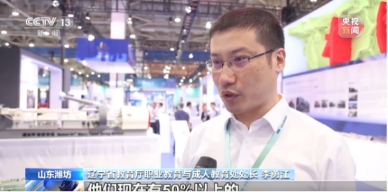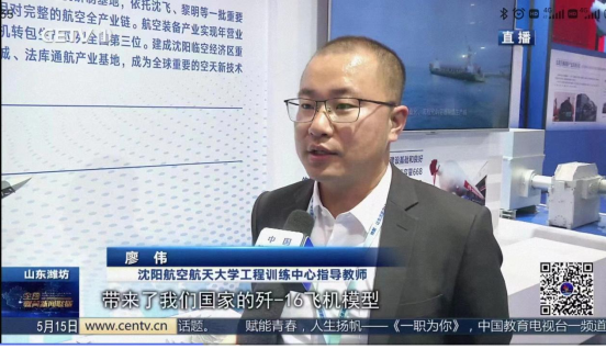 我校负责辽宁展厅制造强国的航空部分,歼31、歼16模型、三D打印的部分航空零件受到关注。辽宁省教育厅职业教育与成人教育处处长李永江接受央视采访,介绍我省职业教育情况,我校廖伟老师接受中国教育电视台采访,介绍我校的职业教育与航空特色的融合。