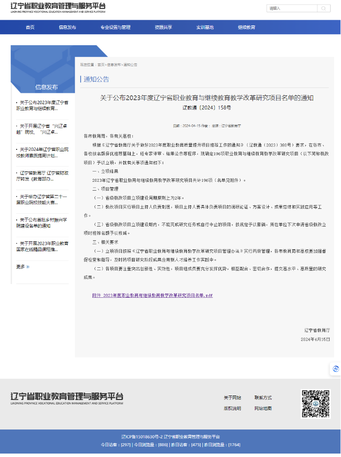 近日,辽宁省教育厅公布了2023年度职业教育与继续教育教学改革研究项目立项名单,我校成功获批2项教学改革研究项目,这一成绩取得给学校在职业教育领域的持续发展注入了新的动力。