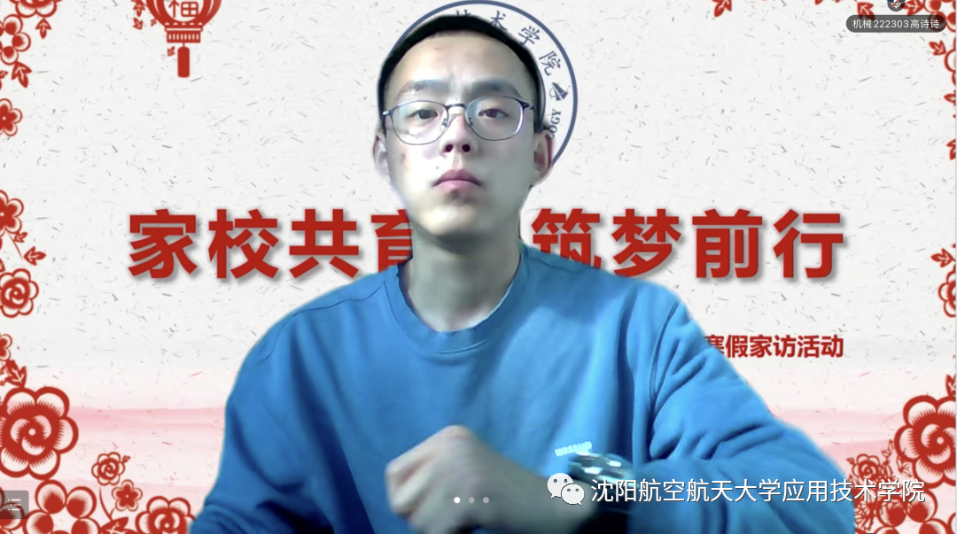通过这次线上的家访我感受到了老师和学校的给予的关爱。老师讲解了很多关于学业和工作方面的问题,提醒我们珍惜有限的学习时间,不要浑浑噩噩虚度光阴,要努力学习专业知识和巩固专业技能,为将来工作打下坚实的基础。在学习上要踏实努力明确目标,不要好高骛远盲目跟随。在校的两年时间弥足珍贵,也是一个不断自我沉淀的过程。在学校的集体生活中也要主动体量和关心别人,也让自己变得更加独立坚强。我会珍惜在大学中的每个收获与点滴,这是生命中很宝贵的体验。我们不能因为前路艰辛就放弃前进的脚步,追求梦想的过程是苦涩的,但经过磨练的人生会让我们变得更加坚毅,只要坚持梦想终会开出花朵。这一次的家访架起了学校和家长的桥梁,老师给家长和学生在学习和生活都给予了很多建议和心得。在新春佳节来临之际也提前祝各位老师新年快乐!